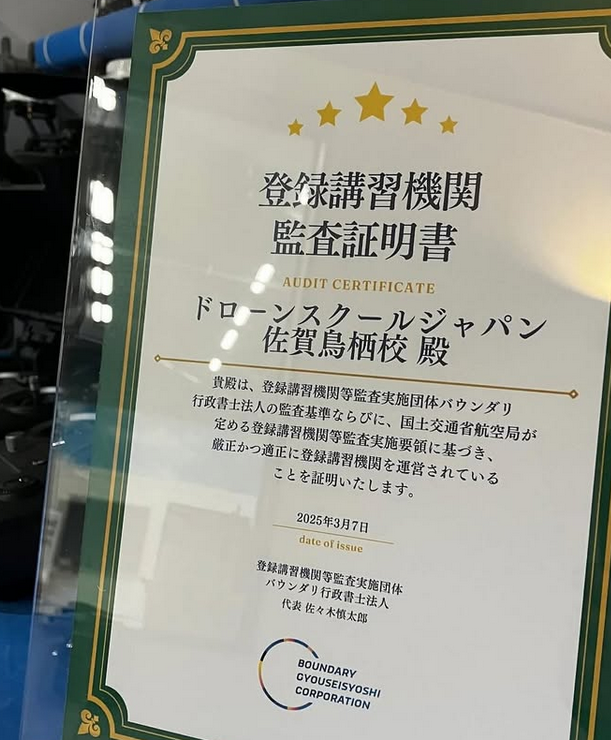 2回目の登録講習機関(ドローンの国家資格講習を行うスクール)の監査が無事に完了しました。