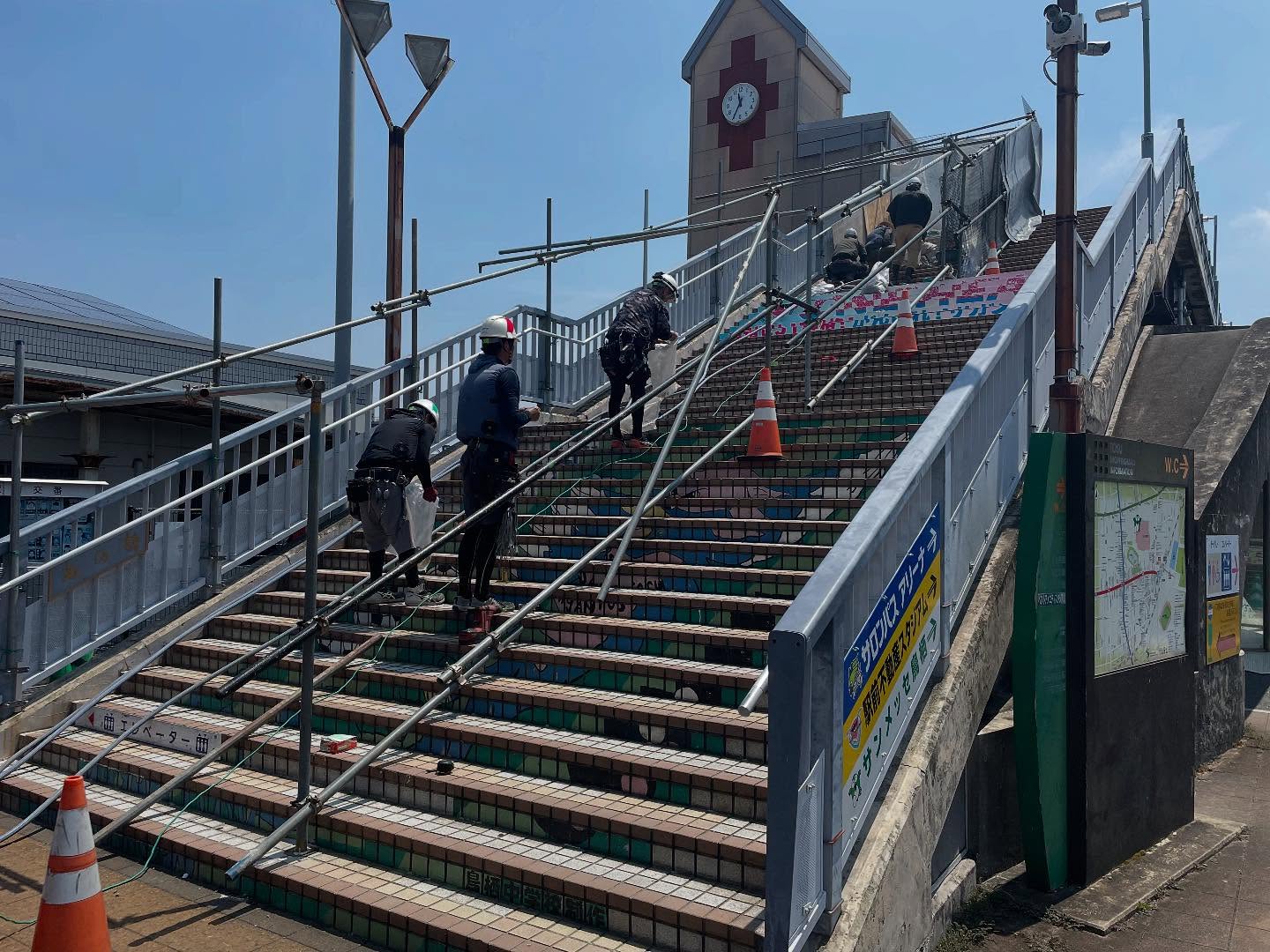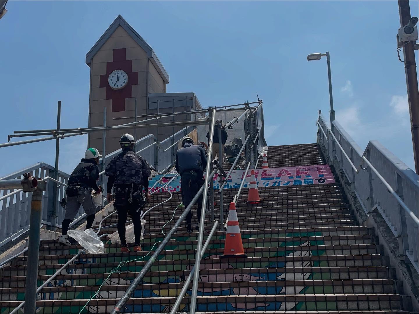 駅舎の改修や新設工事では、足場が不可欠です。