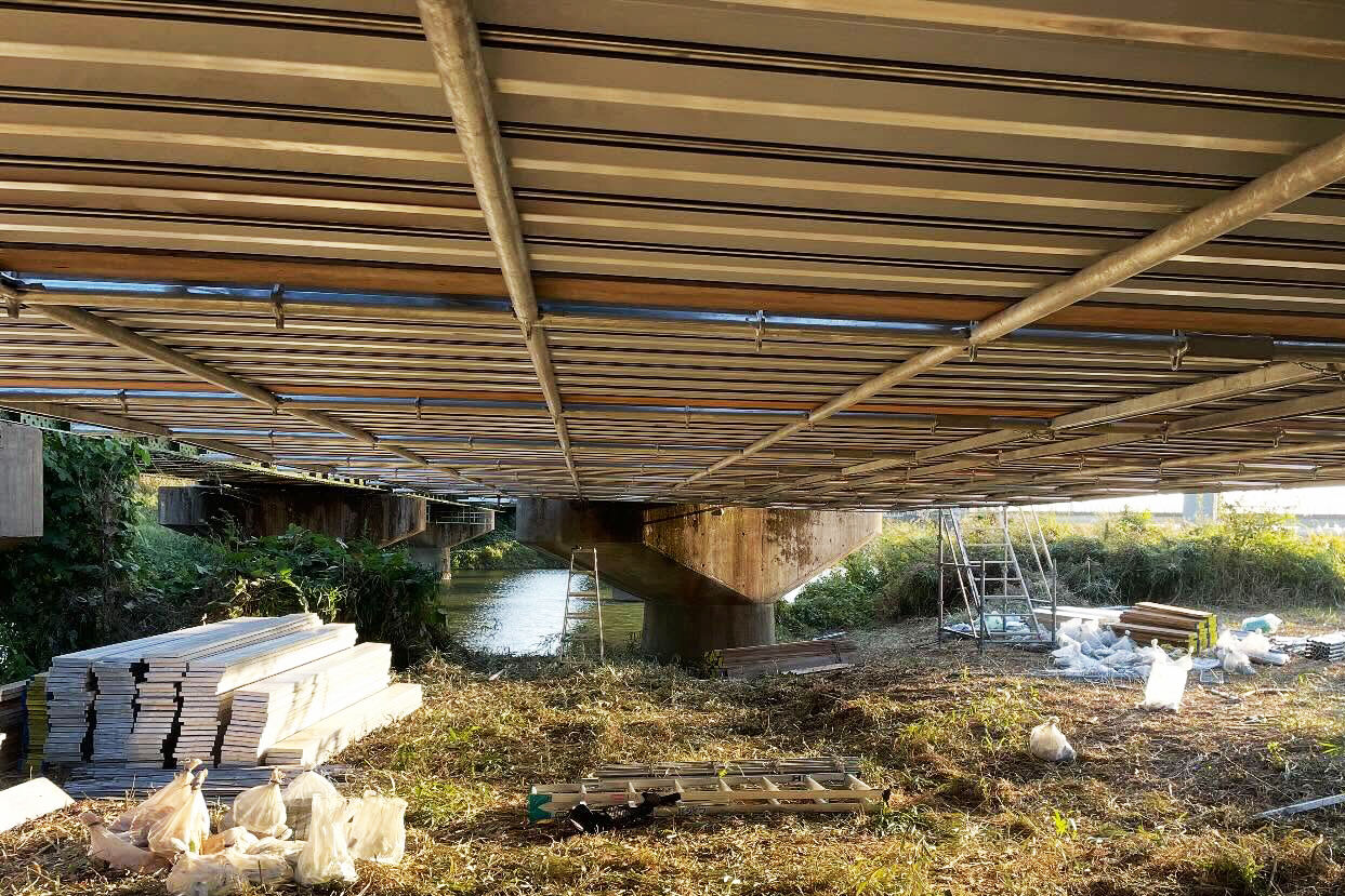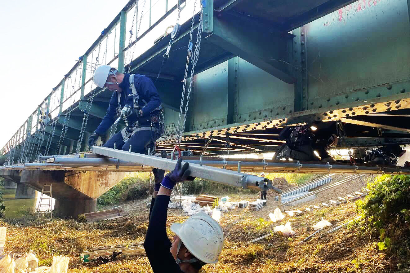 橋下は高所ではないとはいえ、光が届きにくい暗い場所での作業が続きます。